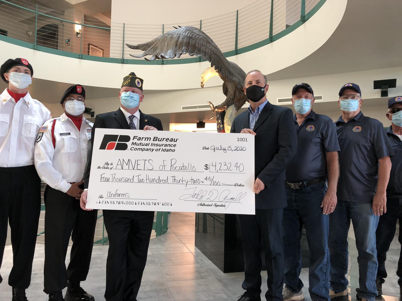 POCATELLO – A recently formed organization that represents veterans in Bannock County got a boost from Farm Bureau Mutual Insurance Co. of Idaho, which donated $4,232 to the group July 15.