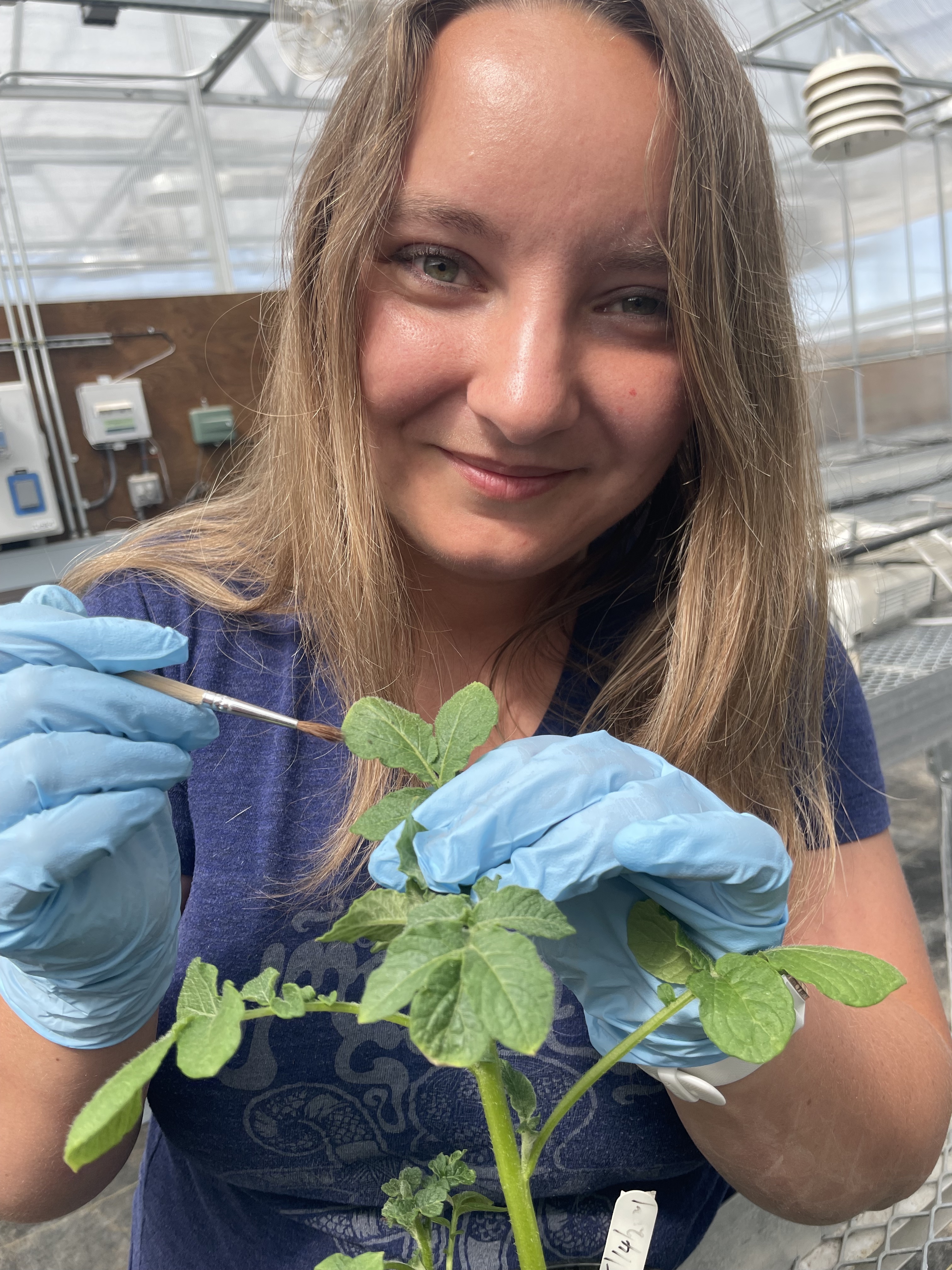 For her third project, Yoho’s team has set up hoop houses in a seed potato field in Kimberly, exposing plants to PVY-infected aphids at various points throughout the growing season.